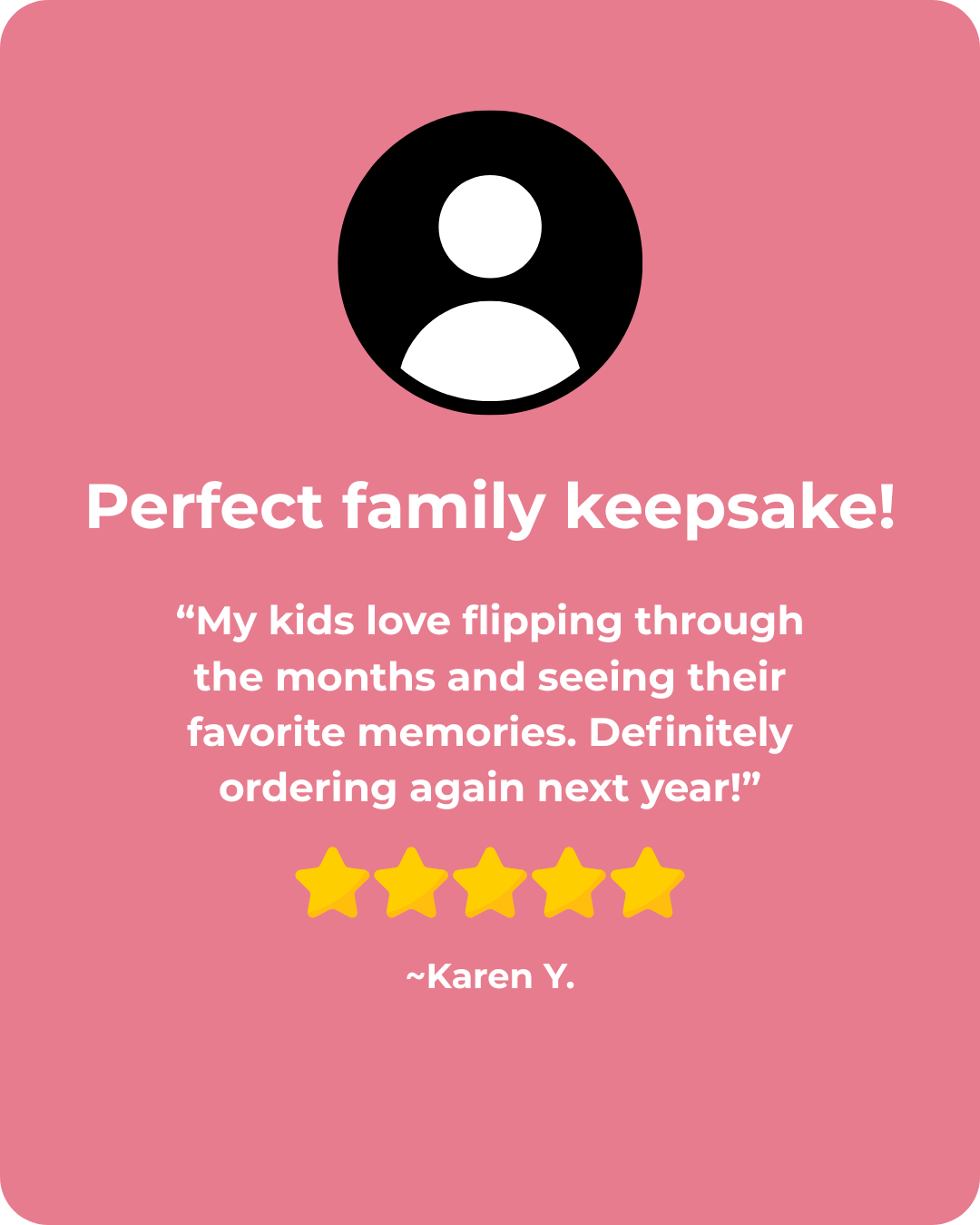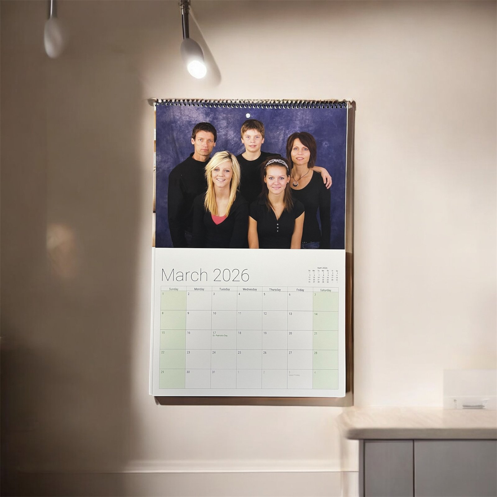 Upload your photos once or personalize each month with unique pictures that tell your family’s story. Printed on premium glossy card stock paper with vivid colors and durable coil binding, every page turns smoothly and hangs beautifully on any wall.